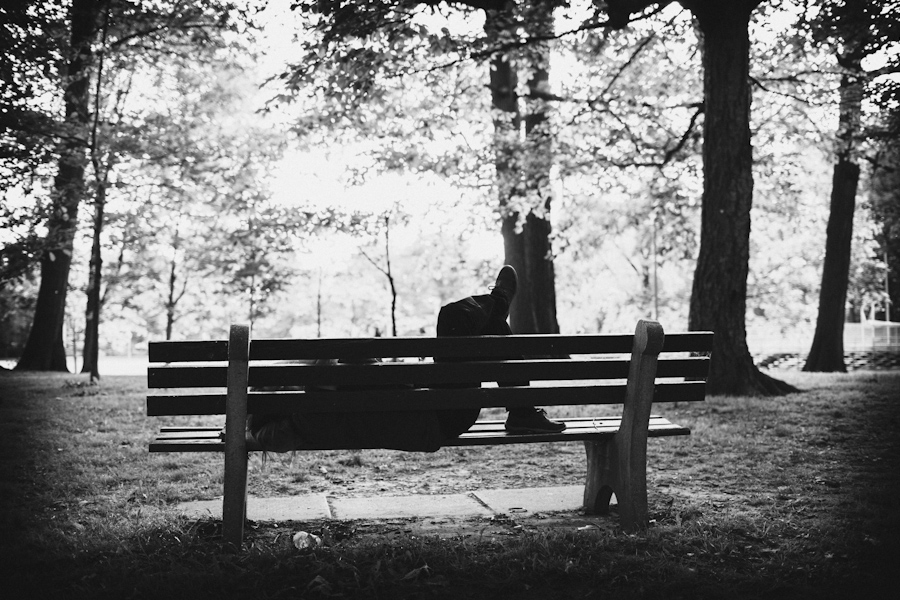He crossed the street and walked into the small park where people ate, drank and read during the day. He found a bench and sat there, put his feet up and closed his eyes. Without his knowledge he fell asleep and was still sleeping when the sun began to come up the next morning.